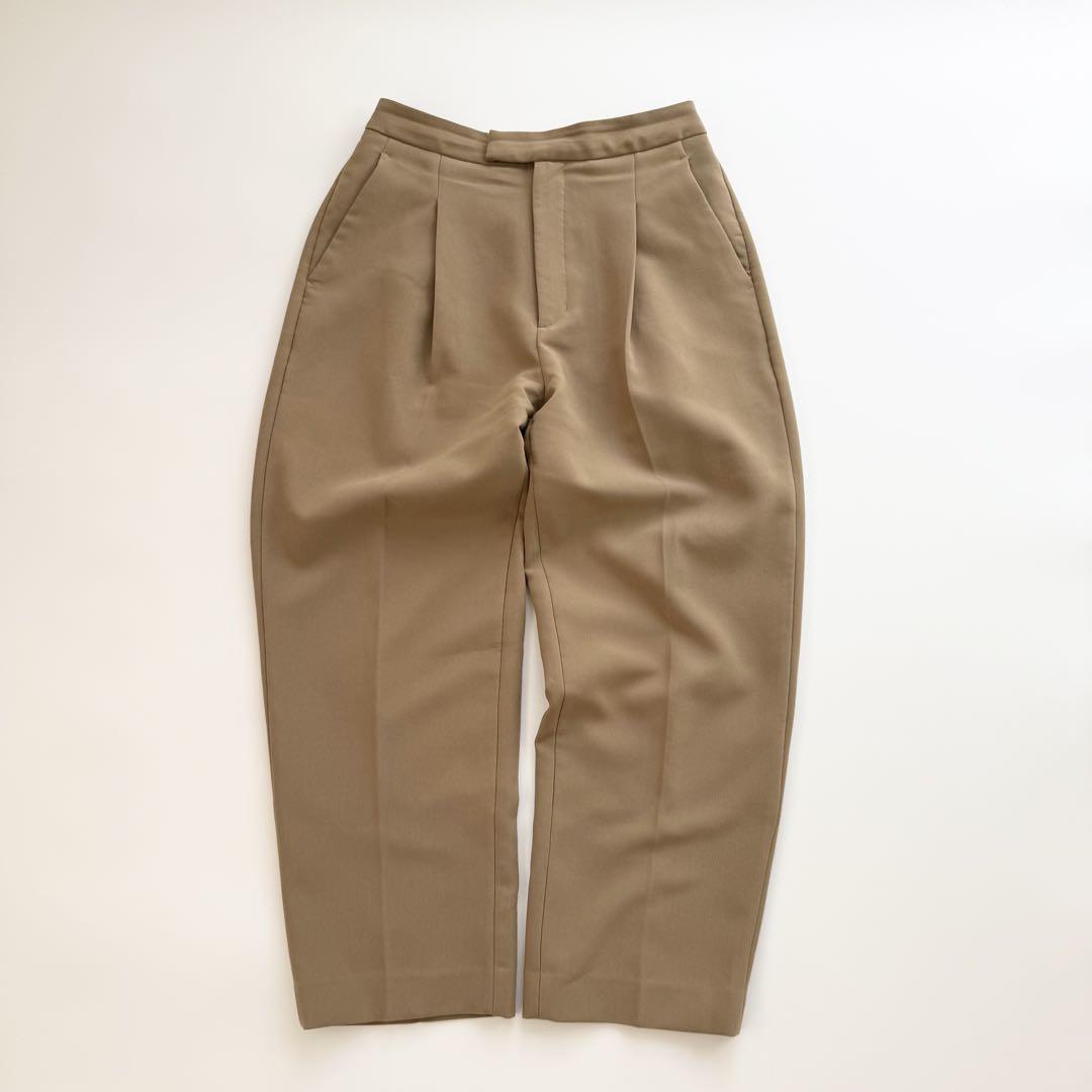 ジャケットは、まじめすぎず、モードすぎない、長め丈の着やせシルエット。パンツは、おなかまわりもすっきり、美脚をかなえるワンタックのテーパードシルエット。スーツメーカー「カフカ」の監修のもと、大人のからだをきれいに見せるパターンで、ていねいに仕立てた上品なキャメルベージュのこだわりスーツ。単品でも着まわし自在、着心地のよさも抜群です。