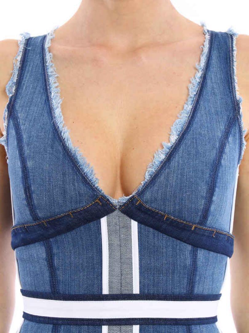 【DSQUARED2】Denim Patchwork Sleeveless Mini Dress